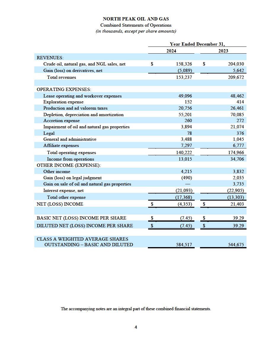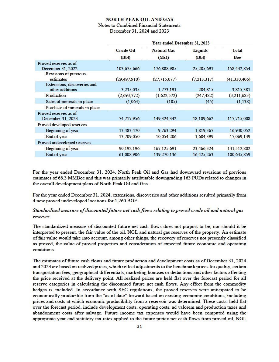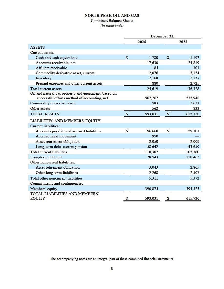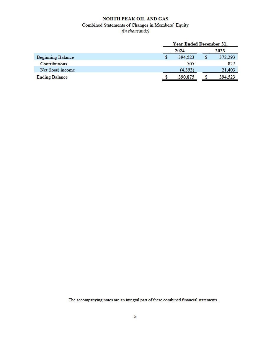 | · | The audited combined financial statements and accompanying notes of North Peak as of and for the year ended December 31, 2024, which are included elsewhere in this filing; and |