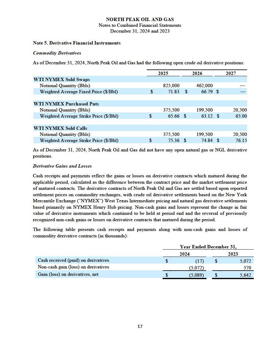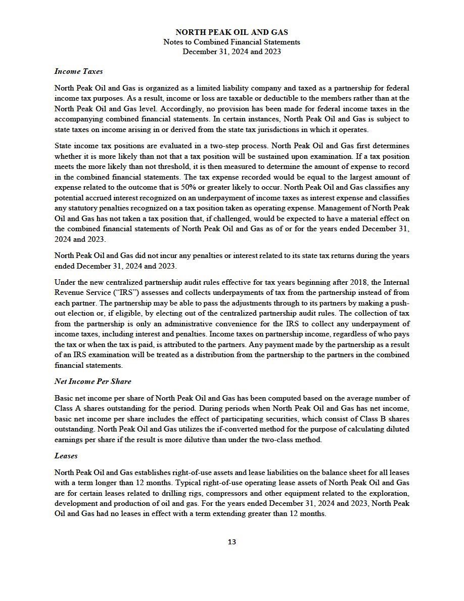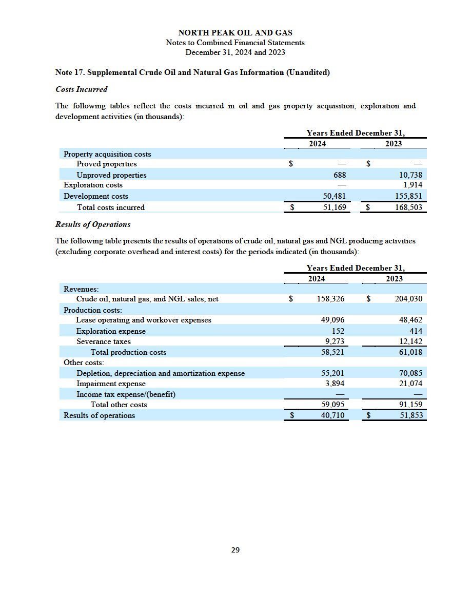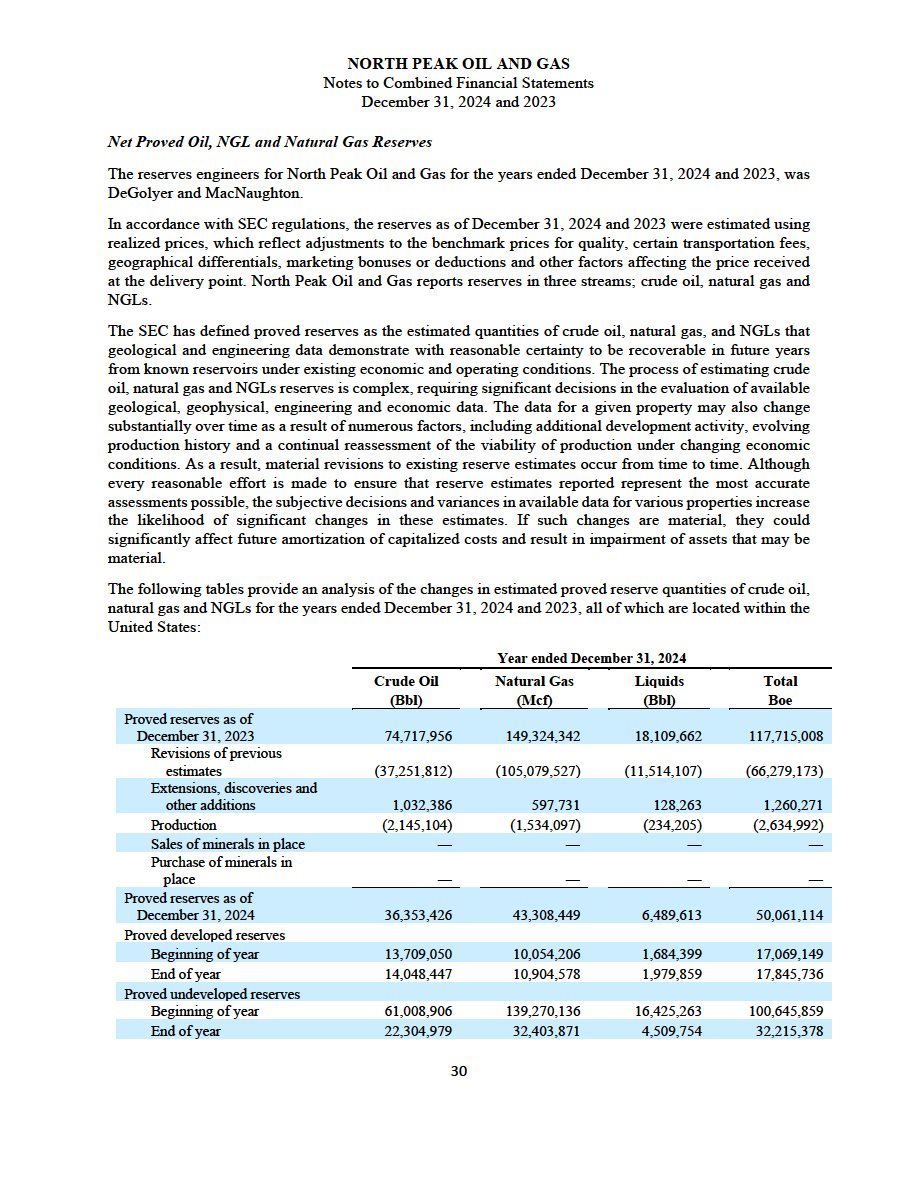 | · | The audited combined financial statements and accompanying notes of North Peak as of and for the year ended December 31, 2024, which are included elsewhere in this filing; and |