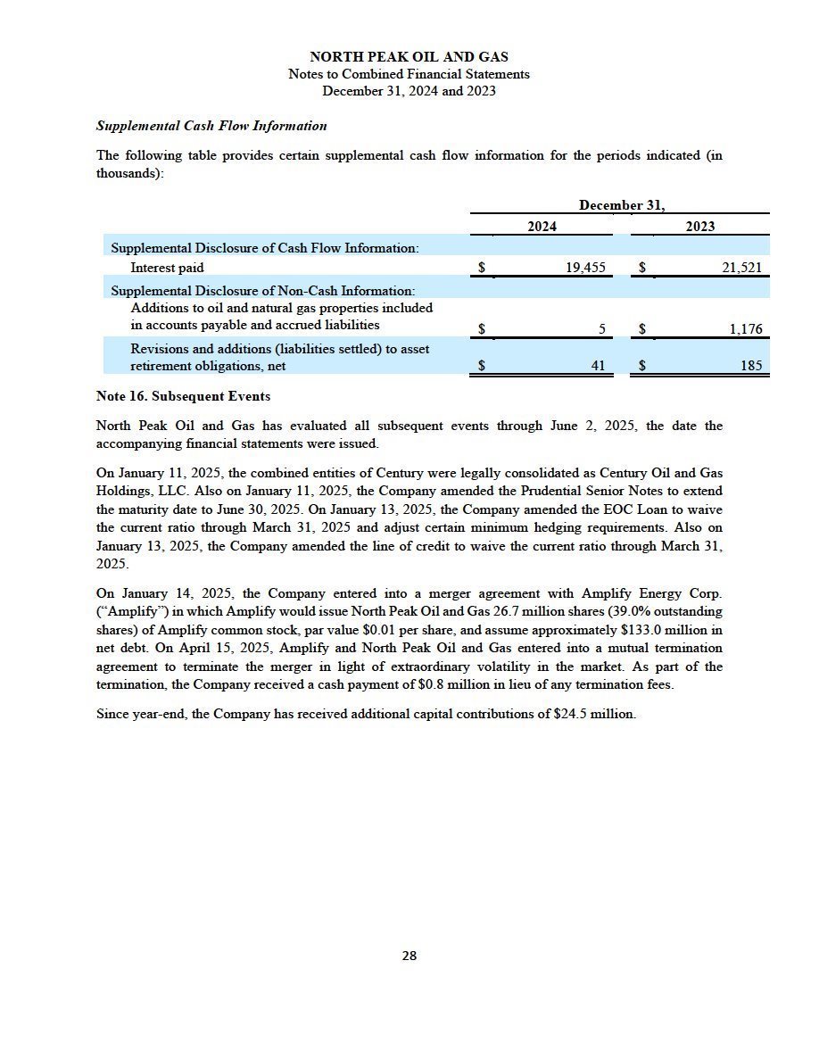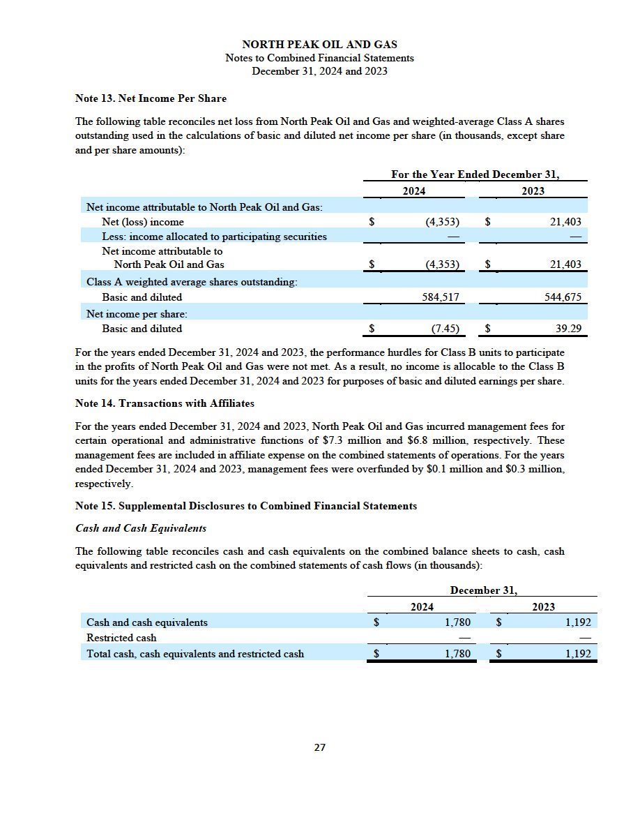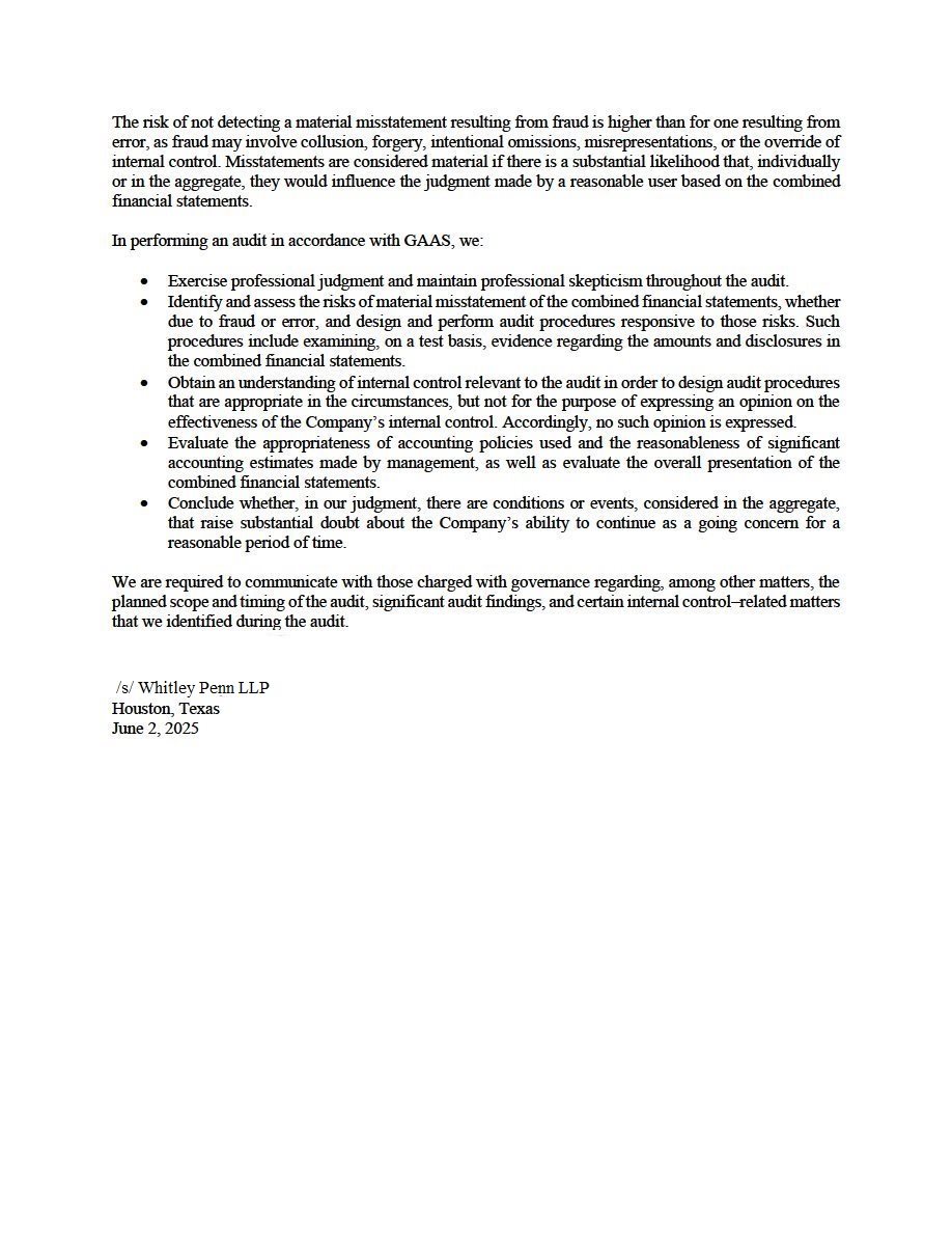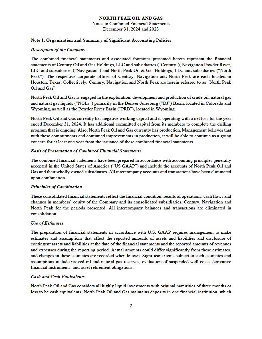 | · | The audited combined financial statements and accompanying notes of North Peak as of and for the year ended December 31, 2024, which are included elsewhere in this filing; and |