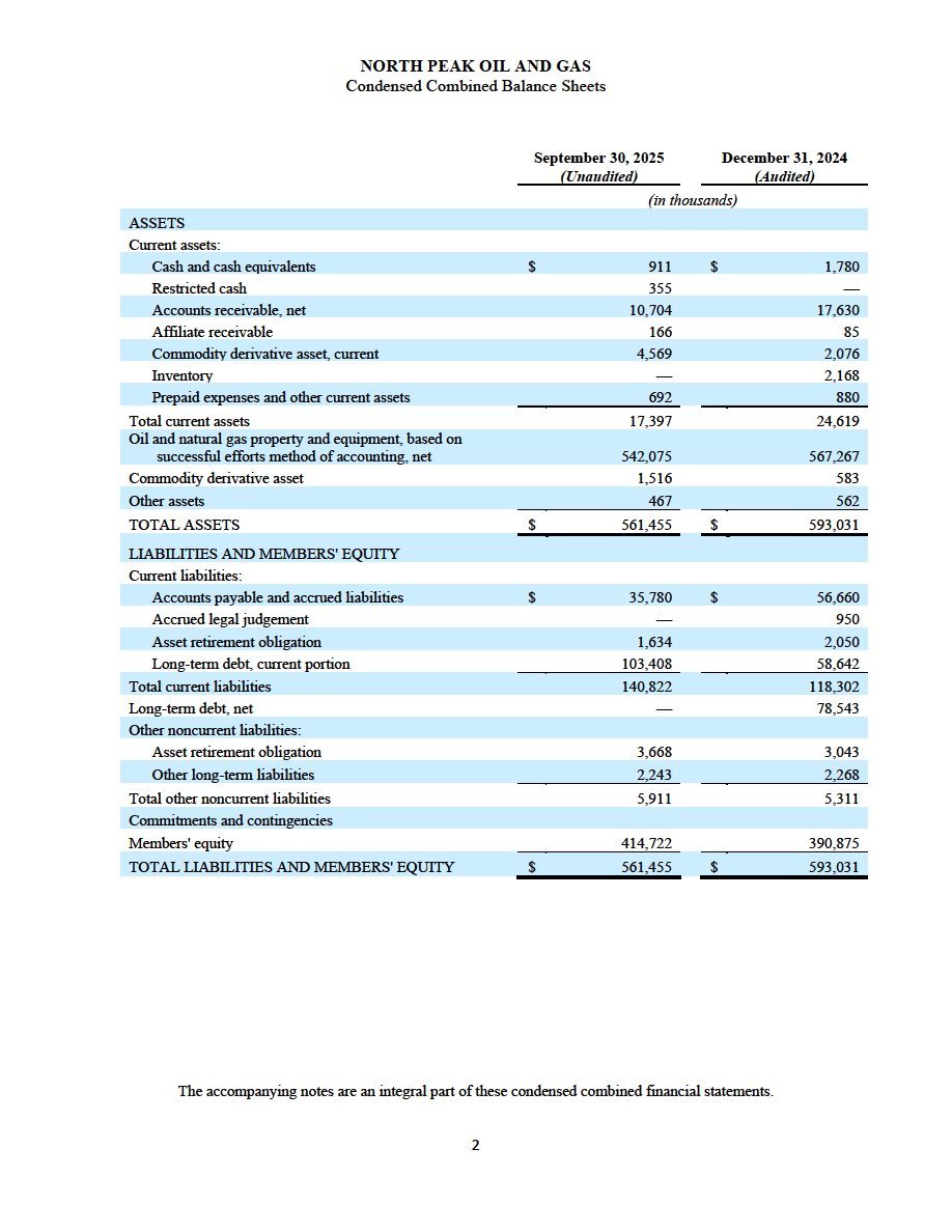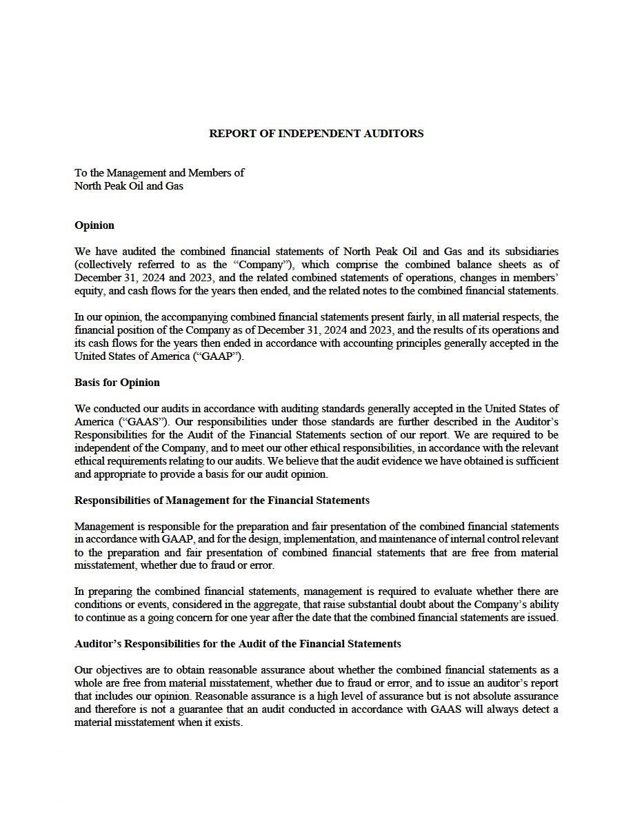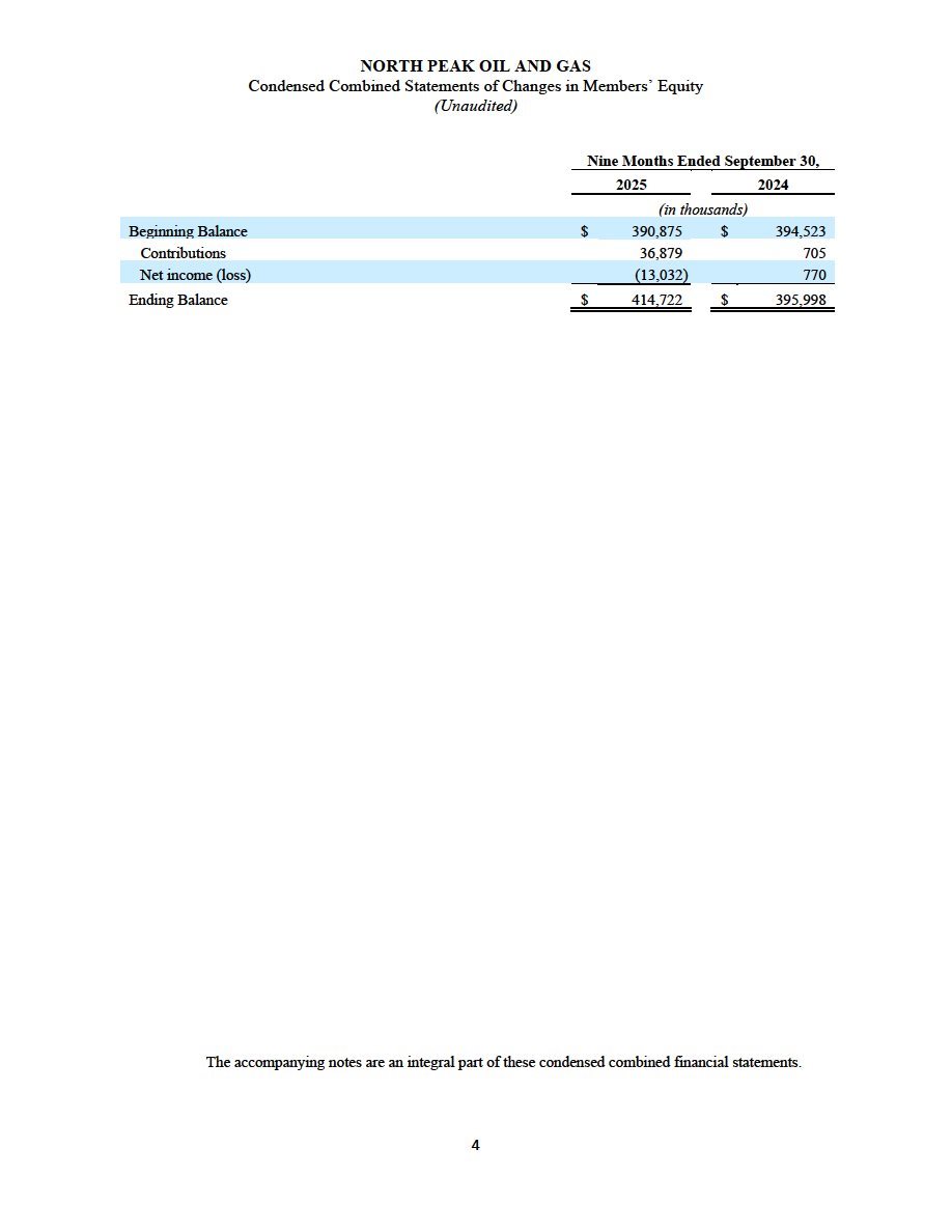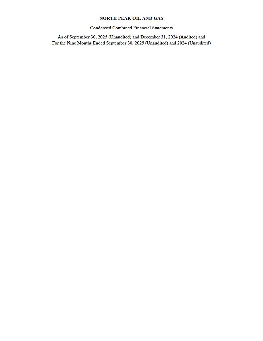 (ii) North Peak’s unaudited financial statements, comprising the condensed combined consolidated balance sheets as of September 30, 2025 and December 31, 2024, and the related condensed combined consolidated statements of operations, condensed combined statements of changes in members’ equity, and condensed combined statements of cash flows for each of the nine months ended September 30, 2025 and 2024, and the related notes to the financial statements, are filed as Exhibit 99.2 to this Current Report on Form 8-K/A and are incorporated herein by reference.