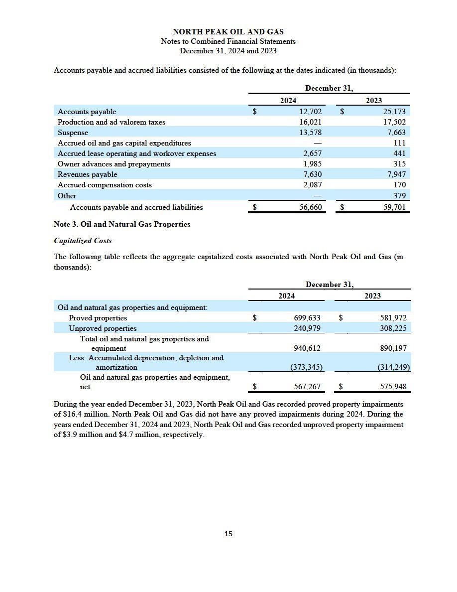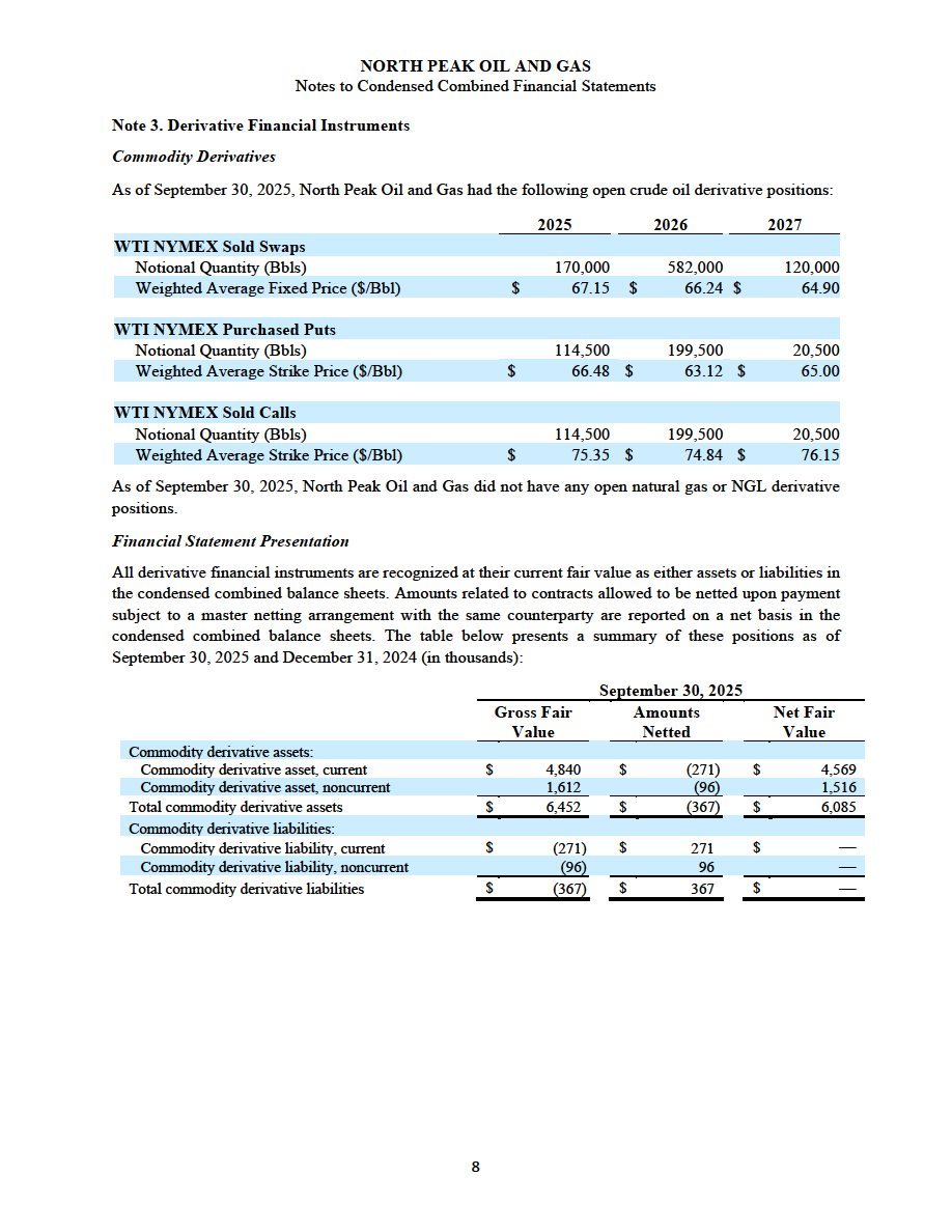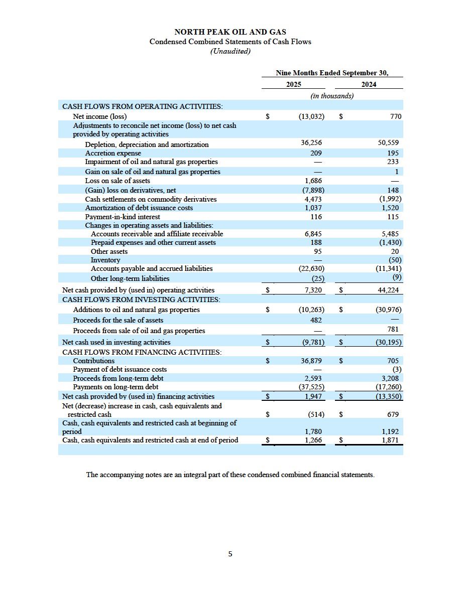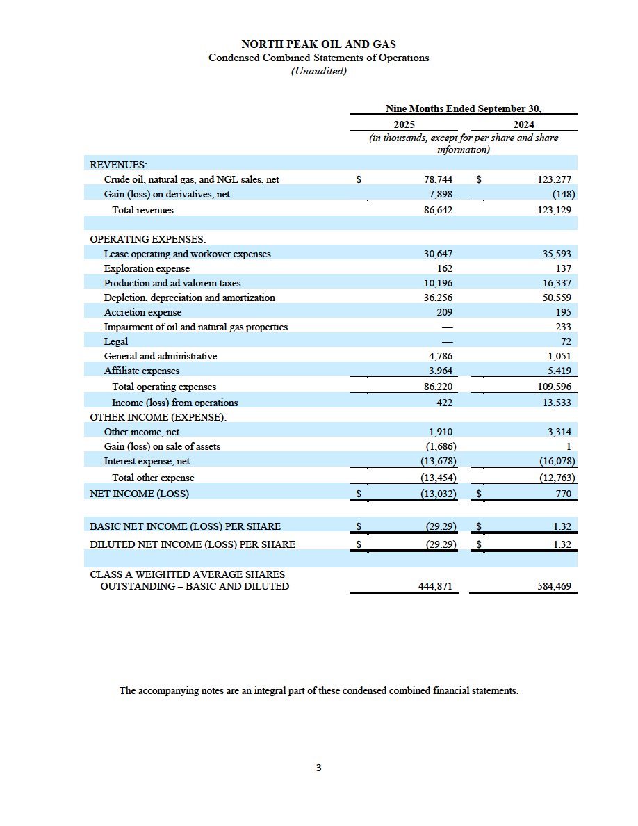 (ii) North Peak’s unaudited financial statements, comprising the condensed combined consolidated balance sheets as of September 30, 2025 and December 31, 2024, and the related condensed combined consolidated statements of operations, condensed combined statements of changes in members’ equity, and condensed combined statements of cash flows for each of the nine months ended September 30, 2025 and 2024, and the related notes to the financial statements, are filed as Exhibit 99.2 to this Current Report on Form 8-K/A and are incorporated herein by reference.