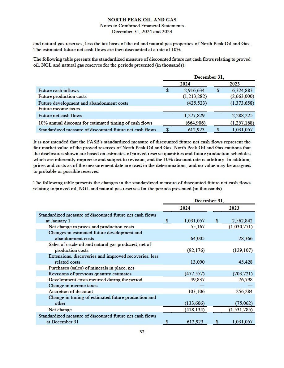 The following table sets forth the changes in the Standardized Measure of discounted future net cash flows attributable to estimated net proved crude oil, natural gas and natural gas liquids reserves of PEDEVCO and North Peak on a pro forma combined basis for the year ending December 31, 2024 (in thousands):